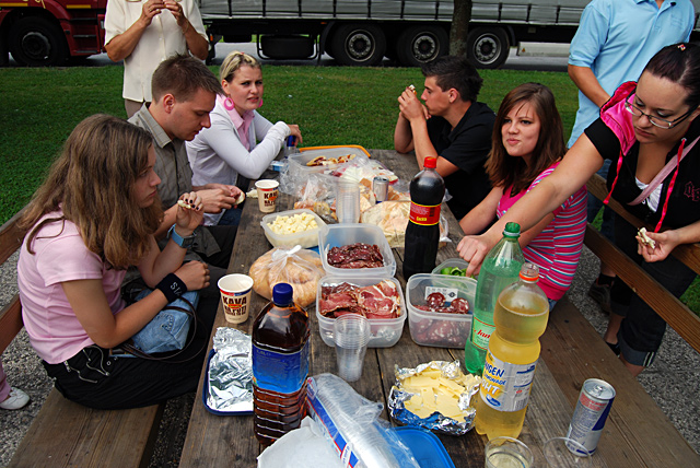 Po občudovanju gradu in razburkanega morja pod njim smo se odpravili na kosilo v Štorje pri Sežani. Po kosilu pa je Martin raztegnil harmoniko, drugi smo dodali petje in s tem pritegnili kar nekaj vaških firbcev. Petje se je nadaljevalo tudi v avtobusu, kjer je glavno vlogo prevzela Barbara Grujina. S svojo neizmerno energijo in smislom za humor nas je zabavala in občasno nasmejala do solz vso pot do doma.
