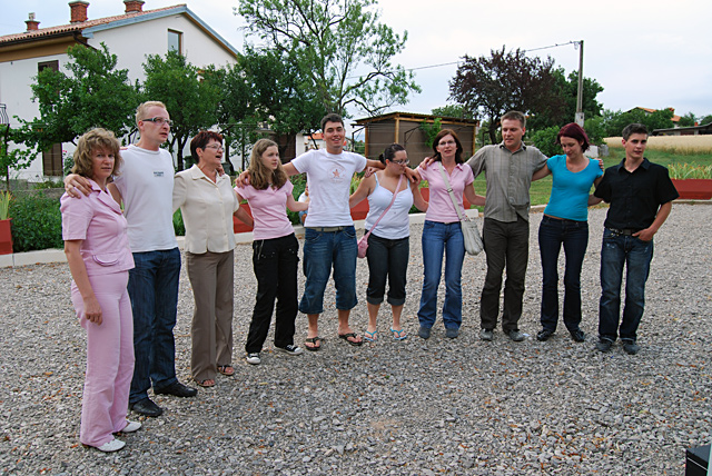 Po maši so nas farani povabili na pririzek na župnijskem vrtu. Prijetno je bilo pokramljati z Repentabrčani, ki jih je še posebej razveselilo, da prihajamo iz vasi, od koder je bil doma znani igralec Stane Starešinič, ki je večji del življenja prebil na odru slovenskega gledališča v Trstu. Da se nismo preveč dolgo zadržali ob kraških dobrotah in njihovi domači kapljici, je poskrbela nevihta, pred nami pa je bilo tudi še veliko načrtov.