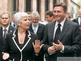 A već kraj julija je šl naš Pahor, dakako po našem zgledu, u Hrvatsko k njihovu novu šefice Kosorovu i bome – opet dakako po našem zgledu – so se i unidva uskladili u farba.