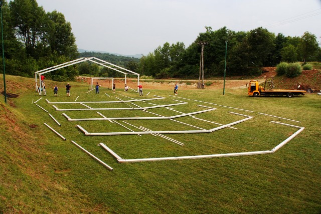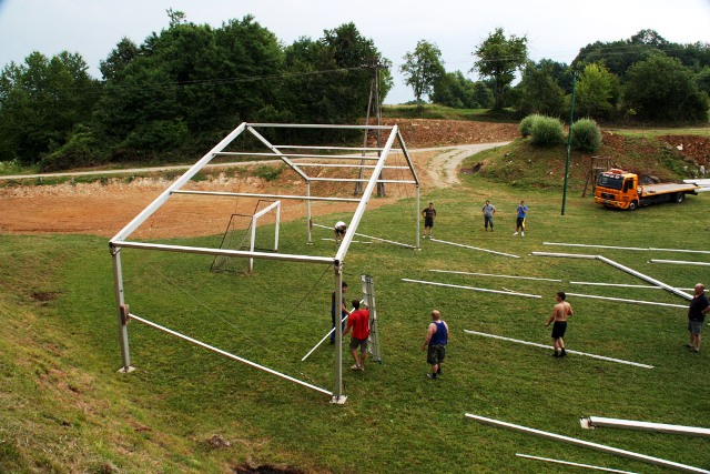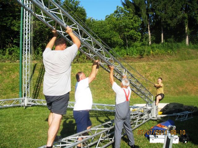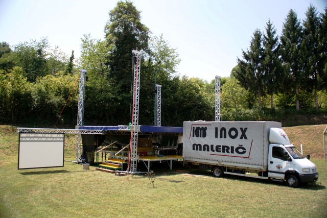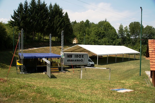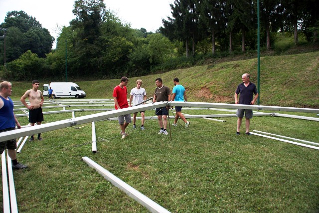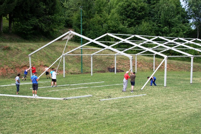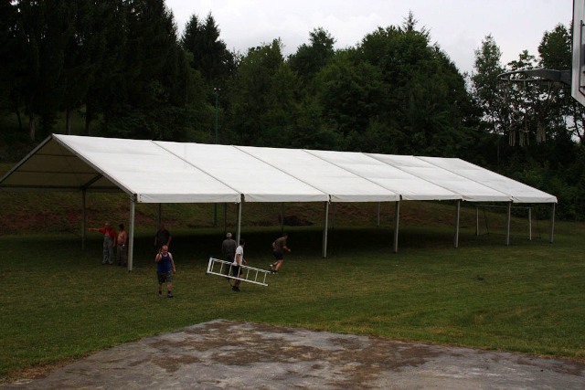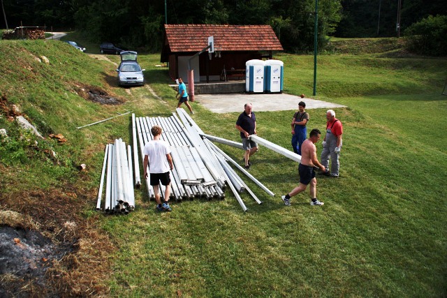 Šotor, ki je torej že pri nas (in bo ostal tu vsaj 10 dni), sta nam omogočila dva naša sponzorja: njegov lastnik RIC Bela krajina in podjetje A-sprint d.o.o. Transport, logistika in mobilni objekti , Železničarska 28, Črnomelj, katerega lastnik je Alen Kambič. Ker prav prevoz šotora, postavitev in demontaža pomenijo največji del stroškov najema šotora, smo se z Alenom Kambičem pogodili, da mu bomo pri delu po svojih močeh pomagali, njegovo podjetje pa bo glavni sponzor naše prireditve.